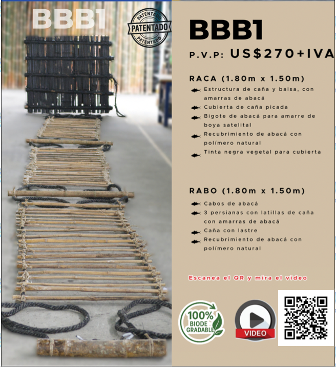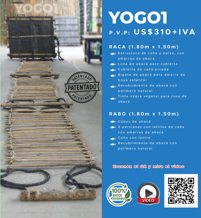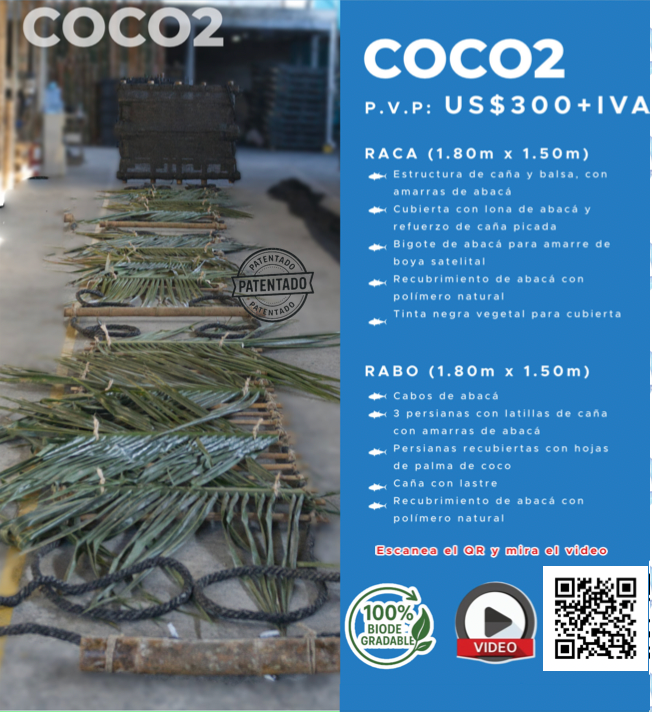 Nuestros dispositivos agregadores de peces (FADs, Plantados) se fabrican artesanalmente y buscan reducir el impacto en el ecosistema marino minimizando la captura de otras especies para lo cual utilizamos materia prima ecuatoriana 100% orgánica como lo son la fibra de abacá, caña guadua y madera de balsa.
